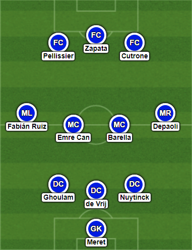 In quanto alla top 11 di giornata, fra i pali troviamo il napoletano Meret, che ormai sembra aver scalzato la concorrenza di Ospina e rischia poco e niente domani contro il Bologna. In difesa, invece, i tre che più ci convincono rispondono al nome di Nuytinck (in una gara bloccata, e quella contro il Cagliari lo sarà, può rendersi pericoloso su palla inattiva), de Vrij (altro cecchino sulle palle alte, al Castellani potrebbe ritrovare un +3 che manca dalla seconda di campionato) e Ghoulam (un po’ a sorpresa in panchina a San Siro, dovrebbe essere titolare al San Paolo contro il Bologna). A centrocampo, diamo fiducia a Depaoli (riuscirà il Chievo a vincere la prima gara in questo campionato? Contro il Frosinone ci sono buone possibilità e l’esterno destro dovrà spingere e mettere in mezzo palloni buoni per le punte), Barella (senza João Pedro, sarà lui a cucire tra centrocampo e attacco; contro il Genoa, poi, ha sfiorato il gol in più occasioni), Emre Can (non ha ancora segnato in campionato, ma sta ritrovando continuità dopo l’infortunio e in casa contro la Samp può dire la sua) e Fabián Ruiz (Napoli-Bologna è un’occasione troppo ghiotta, difficile rinunciare allo spagnolo, che quando cambia passo è impressionante). Infine, un tridente che promette scintille: Cutrone a San Siro contro la SPAL dovrà sbloccare questo Milan in tilt e in difficoltà in fase realizzativa, Zapata è in uno stato di forma stratosferico, come si fa a lasciarlo fuori? Infine Pellissier, il “vecchio” che non invecchia: al Bentegodi arriva il Frosinone e i clivensi non hanno altra scelta che vincere.