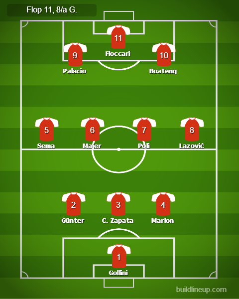 LA FLOP 11 (3-4-3) – Gollini (Atalanta); Marlon (Sassuolo), C. Zapata (Genoa), Günter (Hellas Verona); Lazović (Hellas Verona), Poli (Bologna), Majer (Lecce), Sema (Udinese); Boateng (Fiorentina), Palacio (Bologna), Floccari (SPAL).