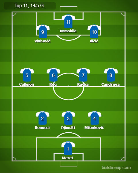 TOP 11 (3-4-3) – Meret (Napoli); Milenković (Fiorentina), Djimsiti (Atalanta), Bonucci (Juventus); Candreva (Inter), Kucka (Parma), Rog (Cagliari), Callejón (Napoli); Iličić (Atalanta), Immobile (Lazio), Vlahović (Fiorentina).