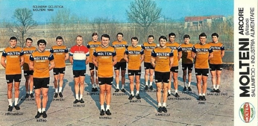 E poi, tanti altri corridori che in maglia Molteni si sono ritagliati il loro momento di gloria. Come dimenticare Guido De Rosso, vincitore del Giro di Romandia del 1962. E poi, Adriano Zamboni, un Giro dell’Appennino e una tappa al Giro d’Italia nel 1961; Carlo Nicolo, una Tre Valli Varesine nel 1958; Guido Neri, il primo corridore in assoluto a scrivere il suo nome nell’albo d’oro del Trofeo Laigueglia nel 1964; Tommaso De Prà, vincitore della Coppa Agostoni nel 1965; Giacinto Santambrogio, una Coppa Bernocchi nel 1969 a tavolino dopo la squalifica per doping di Pierfranco Vianelli (sempre corridore Molteni) Martin Van Den Bossche, belga di rilievo della Molteni “italiana”, terzo al Giro d’Italia 1970 dietro Merckx e Gimondi.