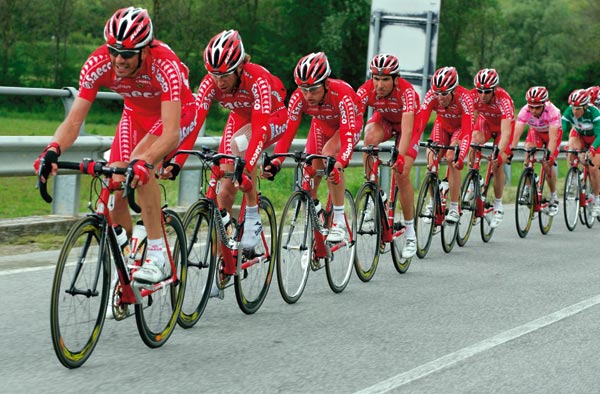 Il treno rosso della Saeco. In quante volate lo abbiamo visto all’opera, dal 1996 al 2001? In tante, tantissime. La maggior parte delle quali vedevano gli apripista della situazione, Silvio Martinello prima e Gian Matteo Fagnini poi, lanciare negli ultimi 200 metri Mario Cipollini. Re Leone in maglia rossa colse tantissime vittorie, tra le quali ben 22 tappe al Giro d’Italia (e la maglia ciclamino della classifica a punti nel 1997), 9 tappe al Tour de France e il Campionato Italiano nel 1996. Anche Martinello e Fagnini si tolsero le loro soddisfazioni. Il primo nel Giro d’Italia 1996 vinse la prima tappa ad Atene e vestì per quattro giorni la Maglia Rosa. Il secondo, ritiratosi Cipollini, nel 1998 colse i successi nelle frazioni di Mendrisio e Milano, portandosi a casa anche la maglia blu dell’Intergiro.