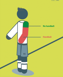 – queste sono al di sopra dell’altezza delle sue spalle (a meno che il calciatore non giochi intenzionalmente il pallone che poi tocca le mani / braccia) - Ma, soprattutto, è presenta una nuova indicazione: dopo che il pallone ha toccato le sue mani/braccio o quelle di un compagno, anche se in maniera accidentale, e poi segna nella porta avversaria o crea un’opportunità di segnare una rete. Sarà considerato fallo di mano, dunque, anche il tocco accidentale del braccio del giocatore attaccante (non sarà considerato fallo, invece, se in caso di tocco accidentale con la mano, il pallone attraversa una lunga distanza come per un passaggio o dribbling e/o ci sono diversi passaggi prima dell’opportunità da rete.)