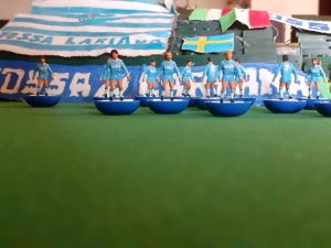 Il nostro esperto Maurizio, webmaster del sito https://conankrom.jimdofree.com/ , preferisce solitamente riprodurre le compagini, con gli ottimi risultati che potrete constatare anche voi, visitando il suo sito. Tuttavia, essendo anche un appassionato di calcio vero e proprio, non è (e non poteva essere) immune dalla febbre del tifo, anche rispetto alle riproduzioni in ambito Old Subbuteo.