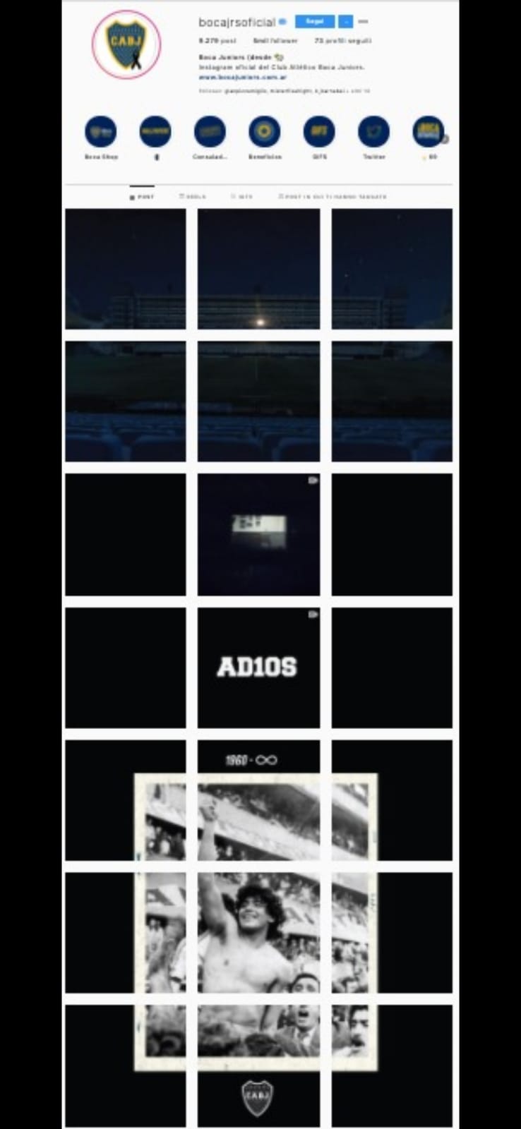 Un omaggio meraviglioso su Instagram, quello del Boca Juniors, per Diego Armando Maradona. Non solo l’immagine che sta facendo il giro del mondo sui social (la Bombonera con un’unica luce accesa in tutto lo stadio, quella del box in cui El Pibe de Oro guardava le partite), ma un collage di foto tutto dedicato al D10S, bostero nell’anima.