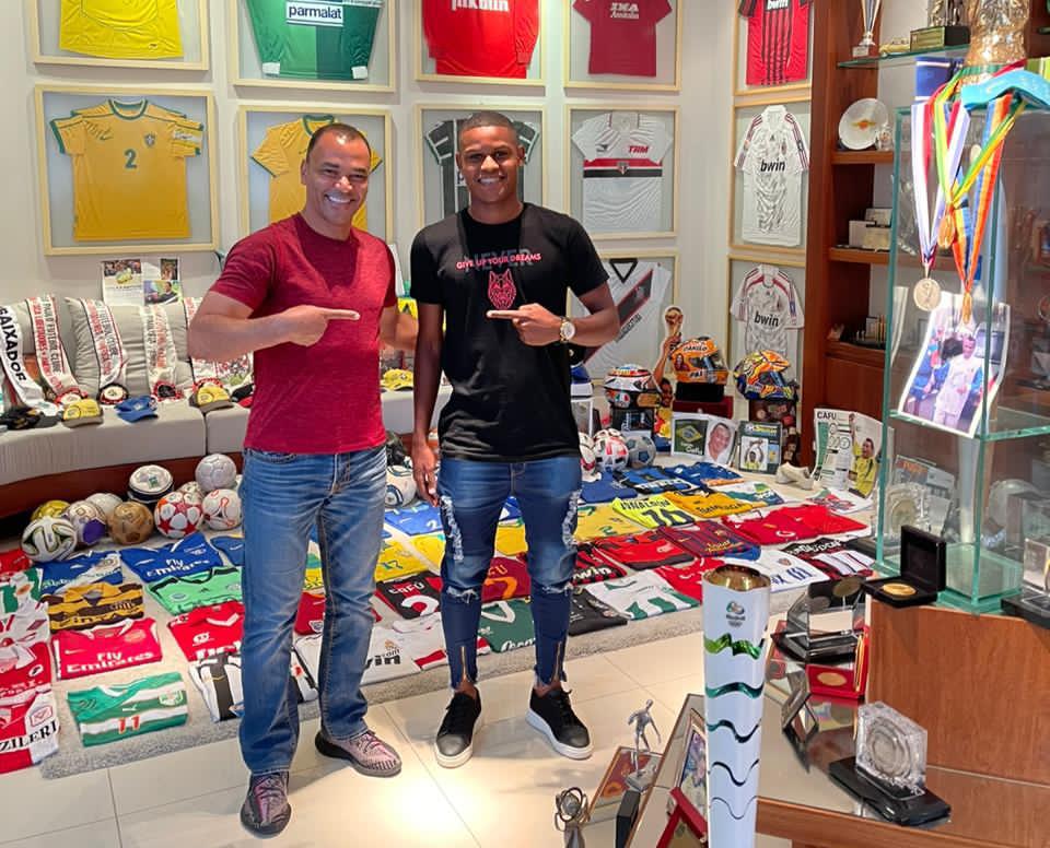 “Apadrinhado” por Cafú, Nathan visita o pentacampeão: ‘Me inspiro nele’