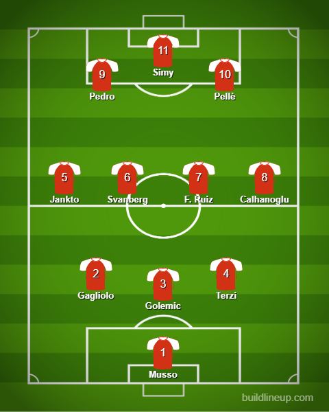 LA FLOP 11 (3-4-3) – Musso (Udinese); Terzi (Spezia), Gagliolo (Parma), Golemic (Crotone); Calhanoglu (Milan), F. Ruiz (Napoli), Svanberg (Bologna), Jankto (Sampdoria); Pedro (Roma), Pellè (Parma), Simy (Crotone).