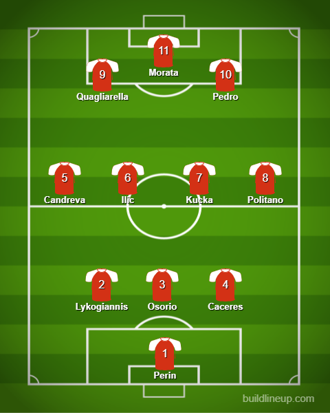 LA FLOP 11 (3-4-3) – Perin (Genoa); Caceres (Fiorentina), Osorio (Parma), Lykogiannis (Cagliari); Candreva (Sampdoria), Kucka (Parma), Ilic (Hellas Verona), Politano (Napoli); Quagliarella (Sampdoria), Morata (Juventus), Pedro (Roma).
