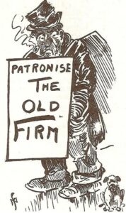 Nel 1904 la rivista The Scottish Referee utilizzò il nome The Old Firm per battezzare il derby di Glasgow. L’occasione fu la finalissima della Coppa di Scozia, poi vinta dai Rangers per 2-0. Venne pubblicata una vignetta con scritto “Patronise the Old Firm” (letteralmente “Patrocina la Vecchia Azienda”): il fumetto satirico sottintendeva che dietro l’antica rivalità c’erano, in realtà, aspetti economici che finivano per accomunare queste due compagini così distanti e antitetiche in tutte le loro sfaccettature. Anzi, qualche commentatore ha parlato addirittura di Celtic e Rangers come di “due vecchi e saldi amici”.