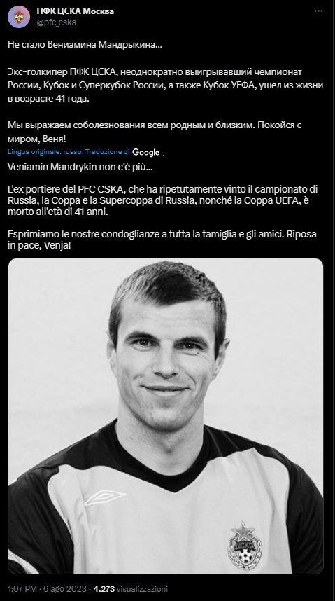 Si è spento oggi l’ex portiere della Nazionale russa Veniamin Mandrykin. Aveva 41 anni, ma da quasi 13 aveva visto la sua esistenza stravolta da un drammatico incidente stradale.