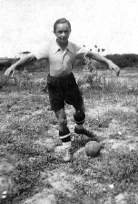 Un periodo difficilissimo per il popolo italiano, appena uscito dal dramma del primo conflitto mondiale. In mezzo a consistenti difficoltà economiche, il nostro dà una mano allo zio che lavora come commerciante e, particolare non da poco per il racconto, scopre il calcio. Nel ruolo di ala sinistra indossa la maglia del Rimini in un match di Serie C 1940-41, compagno di squadra dell’ex nazionale Bruno Dugoni.