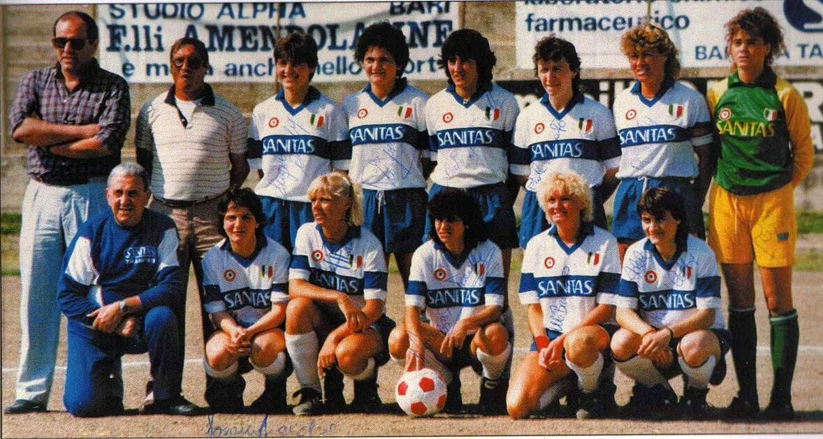 SARDEGNA. Nata il 1° marzo 1967, originaria del piccolo Comune nuorese di Orotelli, Antonella Carta scopre prestissimo il calcio e veste i colori della sua prima squadra: l’Attilia Nuoro, all’alba degli anni Ottanta quando è ancora un’adolescente. Centrocampista dai piedi educati, dotata di ottima tecnica individuale e familiarità con il gol, viene notata nemmeno 15enne dall’Alaska Lecce. Siamo nel 1982 e la giocatrice sarda debutta col botto, vincendo Scudetto – primo di sei complessivi in carriera – e Coppa Italia.