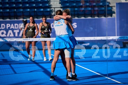 Nell’esultanza e nei cori delle ragazze in azzurro, ma anche nelle lacrime di Chiara Pappacena al termine del match decisivo con il Portogallo per il terzo posto ai FIP World Padel Championships, c’è la gioia e la commozione dell’Italia femminile di Marcela Ferrari e Saverio Palmieri che, per la terza volta di fila, centra il bronzo mondiale. Un risultato che ha un significato speciale: dopo Doha 2021, Dubai 2022, ecco Doha 2024 e la conferma di una crescita evidente per il padel italiano. Nella finale per il terzo posto giocata sul Grand Stand 1 l’Italia ha battuto 2-1 il Portogallo, che chiude così il suo torneo al quarto posto, ma il bilancio di questo Mondiale, secondo coach Saverio Palmieri, braccio destro di Marcela Ferrari, va al di là del bronzo: “E’ vero che dal punto di vista del risultato le nostre ragazze hanno confermato per la terza volta il loro valore a livello mondiale, però c’è una differenza che dà l’idea precisa di una crescita che si è compiuta rispetto al passato e cioè il fatto di aver giocato due match ‘punto a punto’ contro le argentine. Questo però è un punto di partenza e non di arrivo, io credo che si potrà migliorare ancora”.