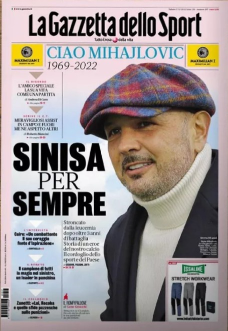 Ci sono uomini di calcio capaci di restare nell’immaginario collettivo per sempre, anche dopo la loro scomparsa terrena. Sinisa Mihajlovic ci è riuscito, frutto di ciò che ha sempre seminato.