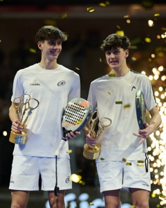 Diciassette anni per Francisco ’Curro’ Cabeza, 18 per Diego Garcia. Quella formata dai due NextGen spagnoli è la coppia più giovane ad aver mai conquistato un titolo nel Qatar Airways Premier Padel Tour. In un Palacio de Deportes de la Guía “Presidente Adolfo Suárez” ancora sold out, il capolavoro si è compiuto al termine di una finale appassionante che ha visto Cabeza (numero 176 del ranking FIP) e Garcia (222) trionfare sui ‘Magicos’ Tolito Aguirre e Gonza Alfonso. Una finale, quella del Premier Padel P2 di Gijon, che era iniziata bene per i due nuovi ‘Superpibes’ con il 7-5 del primo set (e con un set point conquistato con un meraviglioso X3 di Garcia), ma che si era complicata dopo che i due argentini avevano portato a casa il secondo parziale con il punteggio di 6-4. Nel terzo, l’allungo che ha fatto la differenza è arrivato sul 5-3, con il punteggio finale di 7-5 4-6 6-3. “Sono felicissimo di aver vissuto questa settimana e per questo ringrazio tutti”, le parole emozionate di Garcia, a cui hanno fatto seguito quelle di ‘Curro’ Cabeza, già campione del mondo nei FIP Juniors World Padel Championships di Asuncion nel 2023 e di cui si trovano video sul web di quando a 11 anni incantava con il suo talento: “È stata una partita molto complicata ma siamo riusciti a vincerla”.