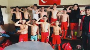 La foto viene scattata negli spogliatoi, con i ragazzini di 9 anni delle giovanili del Turkse, squadra dilettantistica in Belgio...